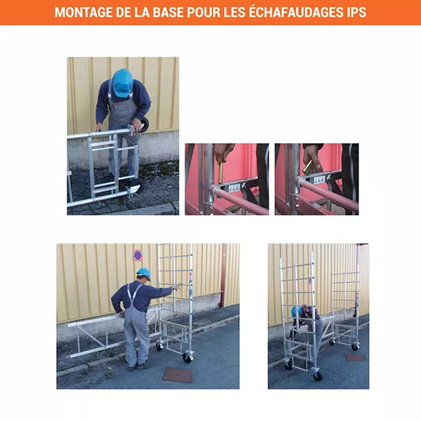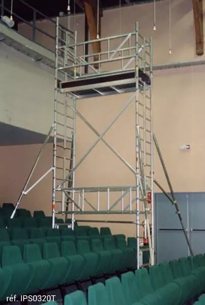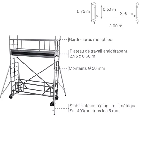 • Echafaudage roulant avec 4 pieds réglables sur 400 mm, tous les 5 mm.