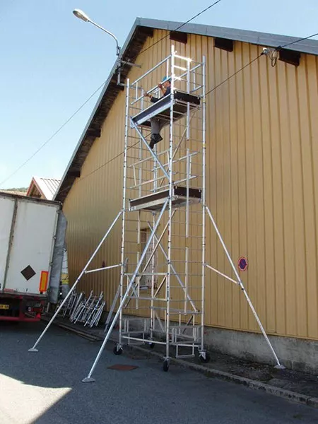 Echafaudage roulant alu - Longueur 2.40m - Embase simple - Hauteur de travail max 14.30m