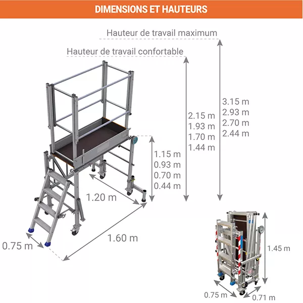 • La hauteur de travail confortable correspond à la hauteur de plateforme + 1.00m